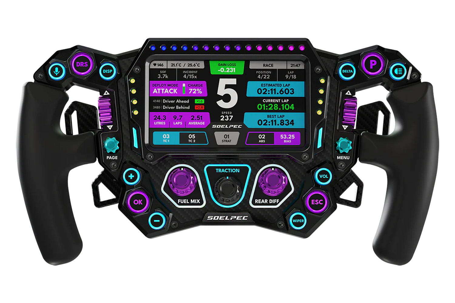 SOELPECs Spectra XR er uden tvivl et af de mest avancerede sim-racing-hjul på markedet i dag. Alt ved dets design viser, at det henvender sig til et krævende publikum, der er på udkig efter et eksklusivt og særligt gennemført produkt.